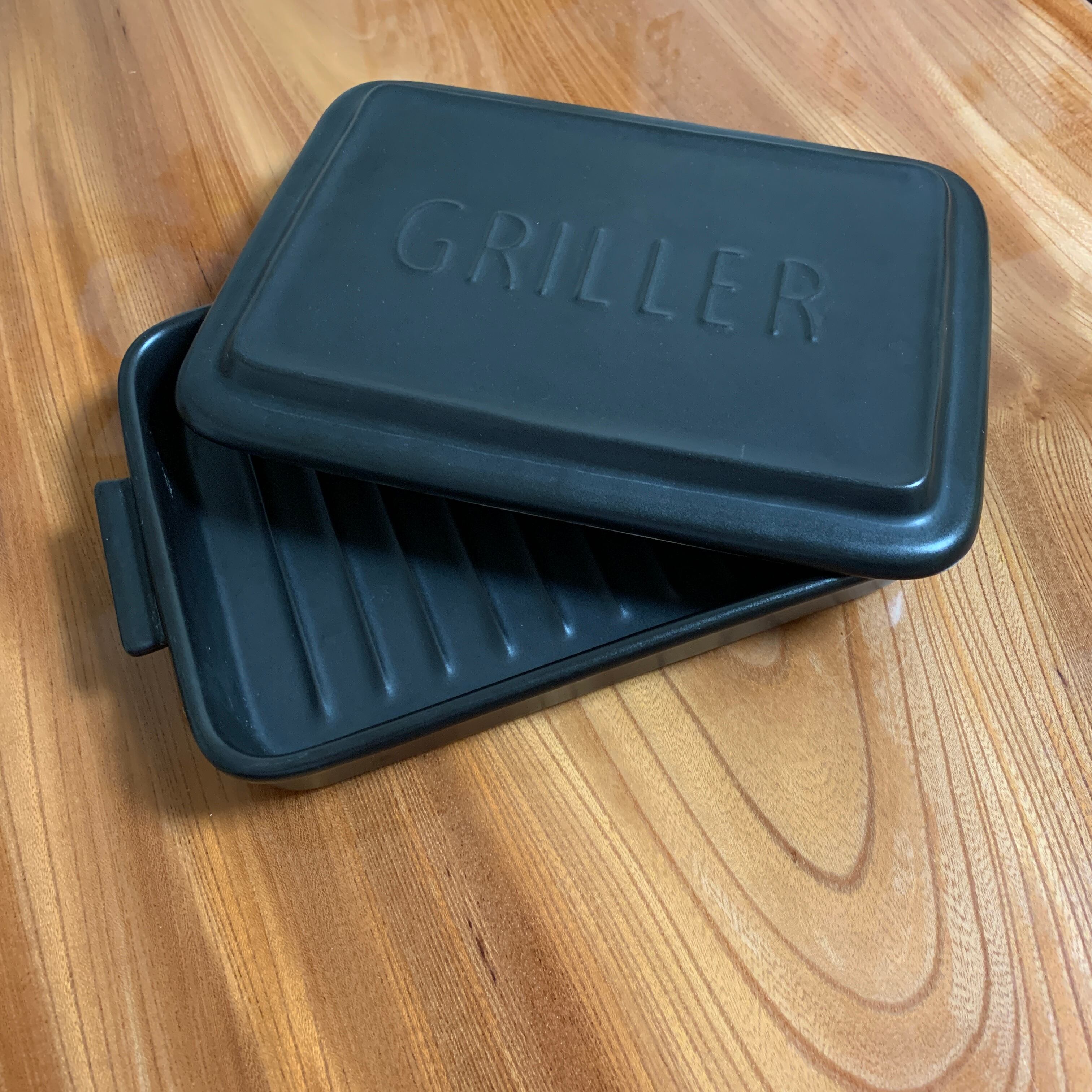 オーブンや直火でも、ガスコンロの魚焼きグリルにも入る大きさの薄型グリラーです。 蓋をすれば全体から食材にじっくりと熱が伝わり、美味しい蒸し焼きが作れます。 魚焼きグリルを使うことで、料理の幅が広がりますし、同時に作りたいときにとっても助かります。 実寸 奥行き25.5cm x 幅18.5cm x 高さ5cm ※必ずガスコンロのグリルサイズを確認した上でお使いください。